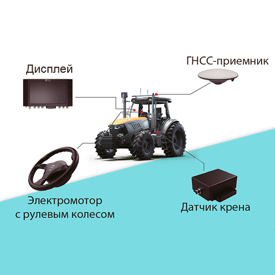 Датчик положения (IMU модуль) состоит 13 акселерометра, гироскопа и электронного компаса. OH устанавливается горизонтально в кабине трактора для измерения углов тангажа, крена и рысканья, обеспечивая ровные навигационные линии на склонах и холмистой местности.