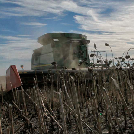 В зависимости от высоты подсолнечника вы сами настраиваете высоту среза и проходимость материала в жатке.
