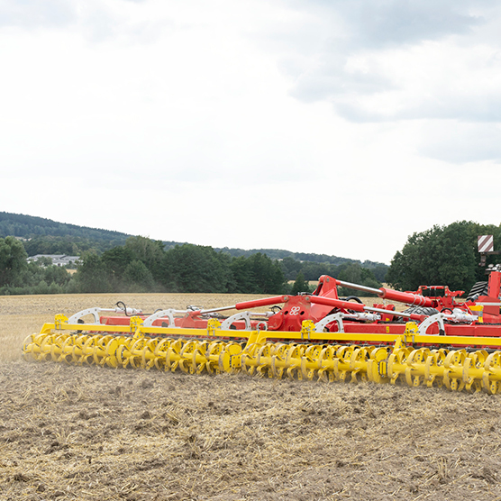 Прочные зубчатые диски из закаленной специальной стали имеют диаметр . На метр рабочей ширины приходятся 8 дисков, что означает — междисковое расстояние всего лишь . Оптимально налаженное взаимодействие нижнего захвата и угла атаки гарантирует надежное вхождение рабочих органов в почву. Расположенные со смещением агрессивные рабочие органы обеспечивают идеальное перемешивание почвы и соломы.