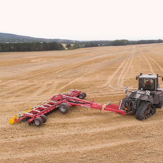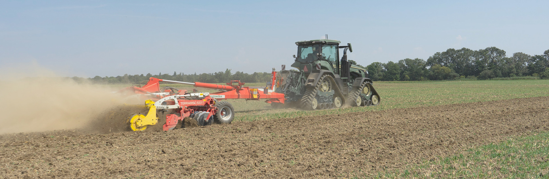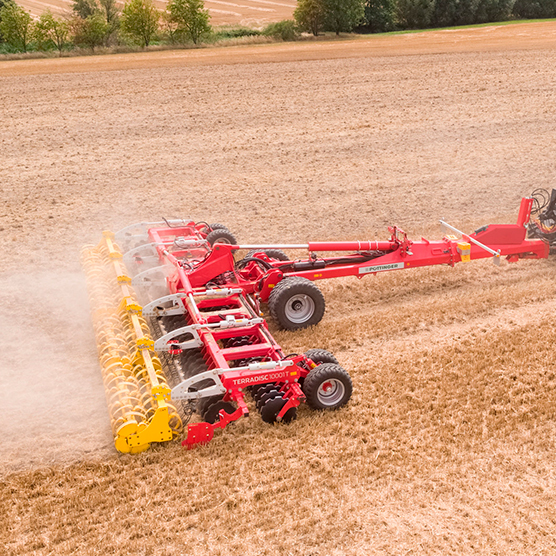 TERRADISC Т – с рабочей шириной от 8 до 10 м. TERRADISC T установлены на транспортном шасси. Это позволяет снизить нагрузку на подъемник трактора и уменьшить уплотнение почвы на краю поля.