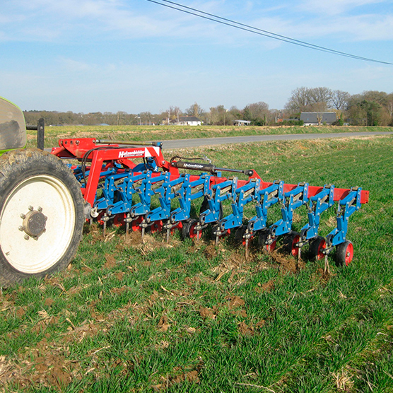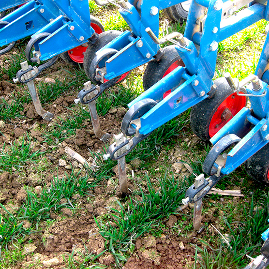 Сошники для лапок с полым штифтом выровнены параллельно так что они прорезают почву своим особым шлицем, таким образом срезая сорняки на корню.