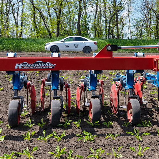 Практика показывает, что использование пропашных культиваторов обеспечивает эффективное уничтожение сорной растительности и способствует повышению аэрации почвы. Но данный процесс является малопроизводительным. Одной из основных причин этого является большое расстояние между рабочими органами культиватора и рядком, которое необходимо выдерживать для предупреждения повреждения культурных растений. Это ведет к ограничению рабочей скорости агрегата, постоянному контролю механизатора за движением орудия Для решения этих проблем компанией Hatzenbichler предлагается активная система автоматического подруливания.