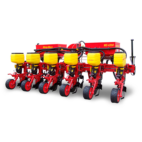 Эта сеялка предназначена для быстрого и легкого изменения расстояния между рядами. Система Easy-Set (запатентованная MaterMacc), установленная на раме, позволяет перемещать высевающие стойки очень просто, сдвигая их по направляющей на необходимое расстояние между рядами (минимум 27 см). Для выполнения этой операции используется только рычаг, поставляемый с сеялкой.